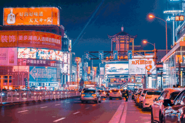 深夜的長沙,交錯著霓虹的光影。