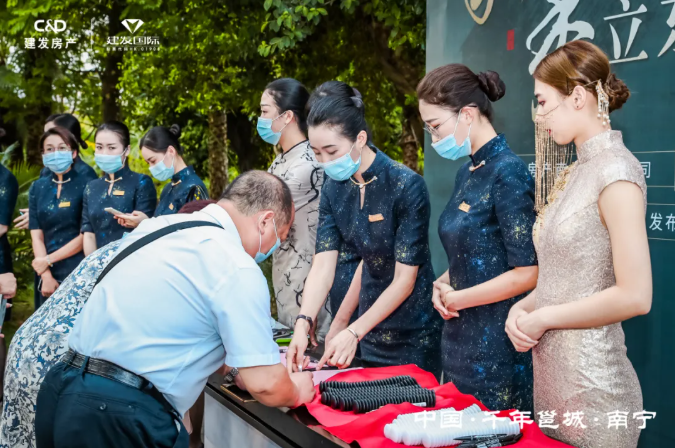 活動(dòng)尚未開始,建發(fā)房產(chǎn)便以一場(chǎng)優(yōu)雅的茶藝品鑒,為來賓們演繹了一場(chǎng)東方美學(xué)大賞。五道大師茶禮,精選天南地北名茶精粹,汲取天地造化精髓,由非遺大師全程監(jiān)制,這五道茶代表著建發(fā)房產(chǎn)在南寧匠造的五個(gè)項(xiàng)目,寄寓著建發(fā)房產(chǎn)對(duì)千年邕城的美好祝愿與獻(xiàn)禮。